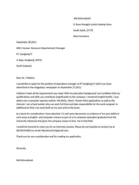 What position is being advertised? Web rpp ini berisi tentang application letter fokus untuk keterampilan menulis siswa dengan metode mind mapping. Thank you very much for reading and understanding my application letter.