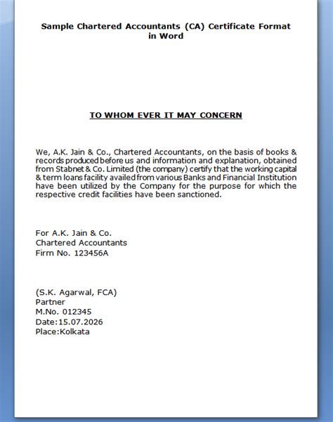 Web the organisation needs to provide to the ca all the relevant documents, records and registers as may be required for verification. Web guidance for chartered accountants on what you need to do if you are asked to certify a copy of a document, including application. Here's an example of a business letter format that you can use as a.