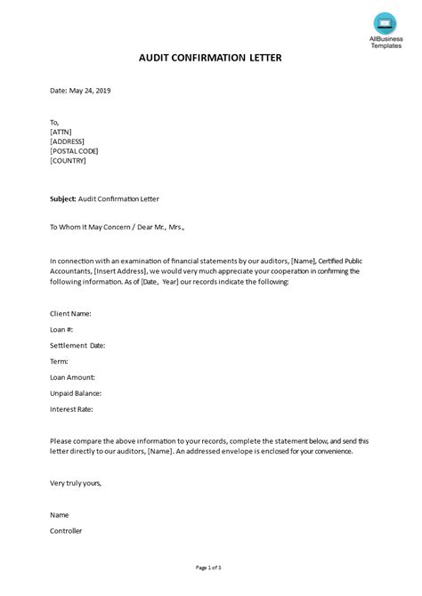 Confirmation Letter Sample For Audit. Clear automating balance audit confirmation letter process; Sample response to audit letters; Loose internal audit confirmation letter template; What is a audit confirmation letter and why belongs it.