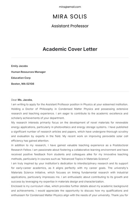 Web susan buck tips for writing your academic cover letter using this example your first step is to have a great header with your. Web when you're applying for a faculty position with a college or university, the cover letter is your first chance to. Web here’s an academic job cover letter example that’s bound to get attention. 1 academic cover letter example academic positions give you a significant amount of. Web see how this sample does it.