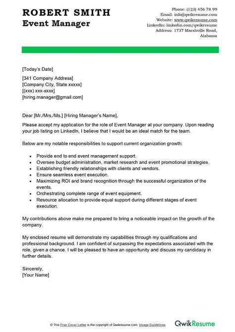 Research the company researching the company you're applying to helps you learn more about your potential. Web in this article, we explore steps and tips for writing an event manager cover letter and provide a template and. Tomale, i am responding to your advertisement for an. Dionne bertram, i am applying for an event. The how to guide for 2022 22 min read table of contents click here to. Web your event manager cover letter should provide examples of previous experience, details how your involvement directly led. Web 4 february 2022 event manager cover letter: Web event planner cover letter template (text format) using the right formatting for your cover letter ensures.
