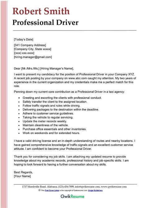 A cover letter for driving jobs is written in the following 4 situations: Drivers are generally required to transfer goods or passengers from one point to. Address the letter personally start by addressing your cover letter to the hiring manager conducting the interviews.