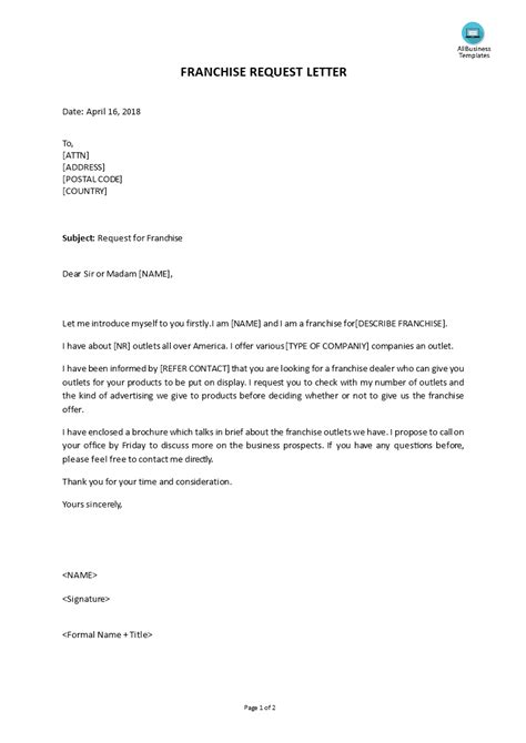 Web Find Your Sample Franchise Request Letter Template, Contract, Form Or Document.