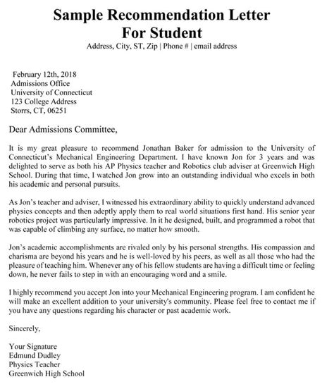 [Today’s Date] Dear [Mr./Mrs./Ms./To Whom It May Concern], I Am Writing To Recommend [Full Name Of Student You’re.
