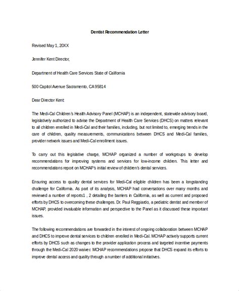 Heres An Example Of A Dentist Recommendation Letter: