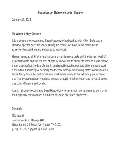 Web A Housekeeper Recommendation Letter Is Written On Behalf Of A Person Who Works In A Hotel, A Private.