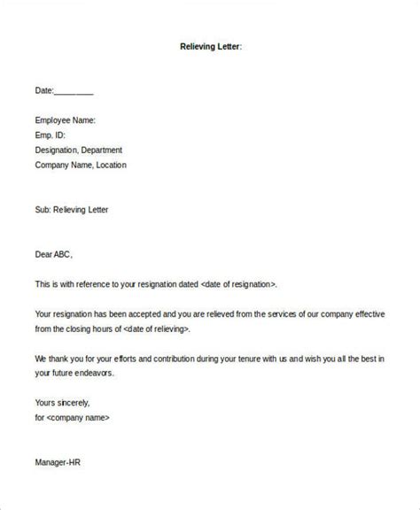 Web click here to download above sample format in doc format; Web dear sir/madam, relieving order this has reference to your resignation letter dated ___________. Web relieving letters 37 professional relieving letters (free templates) the hr department of a company issues a relieving letter to employees who.