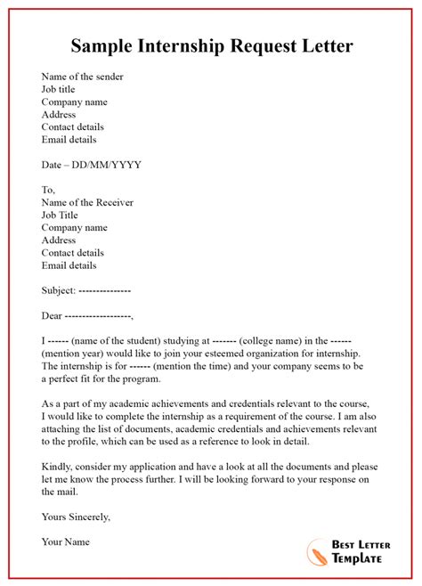 Request Letter Template for Internship Sample with Example from bestlettertemplate.com