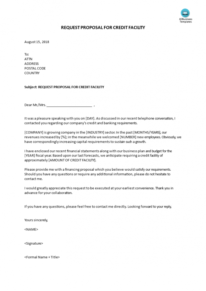 Web a credit facility request letter is a formal letter written by an individual or a company to a financial institution or lender seeking. Wednesday, june 11, 1998] [name, bank and address, ex. Web request proposal for credit facility [date, ex.